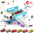CUTE STONE Toy Airplanes, Toy Airplane with Smoke, Lights & Sounds, Friction Powered Plane Toy with Mini Cars for Kids