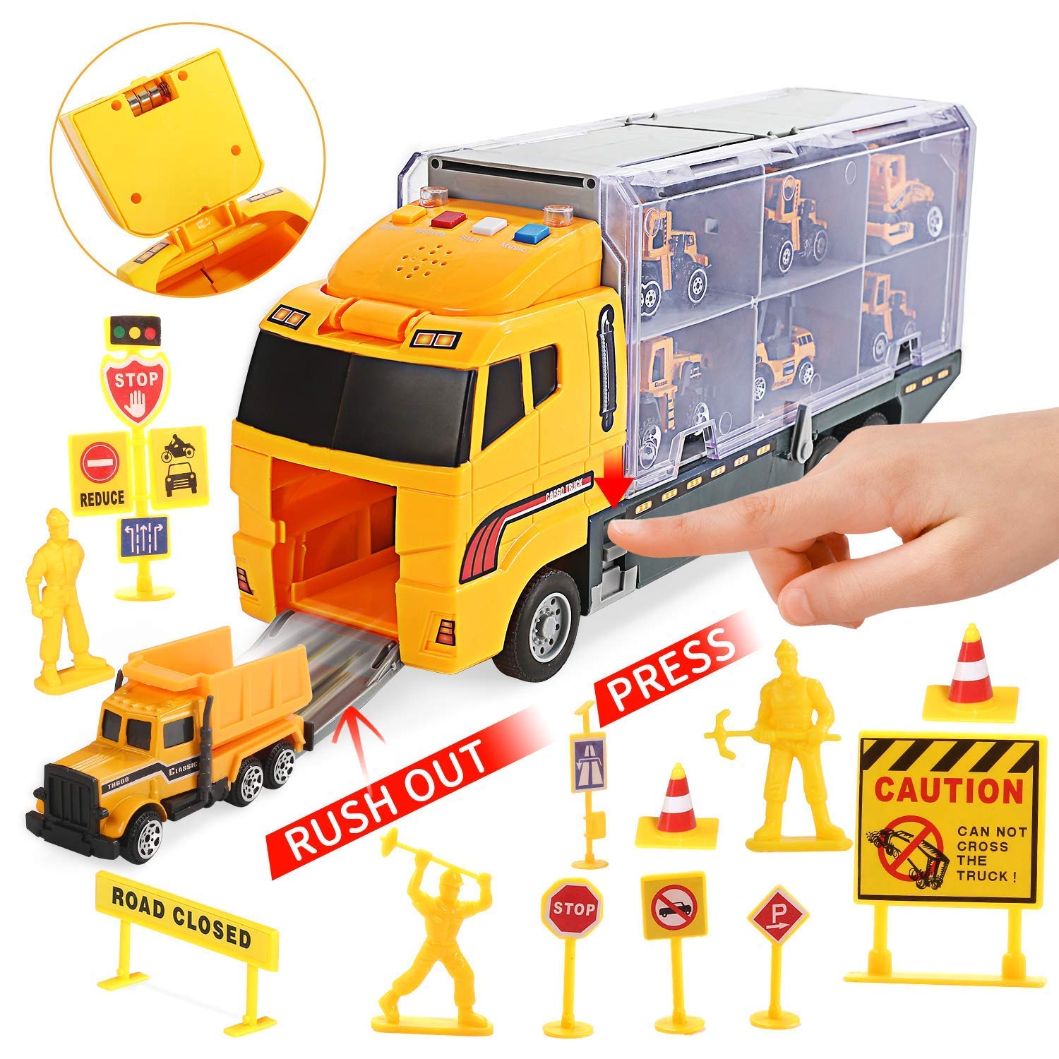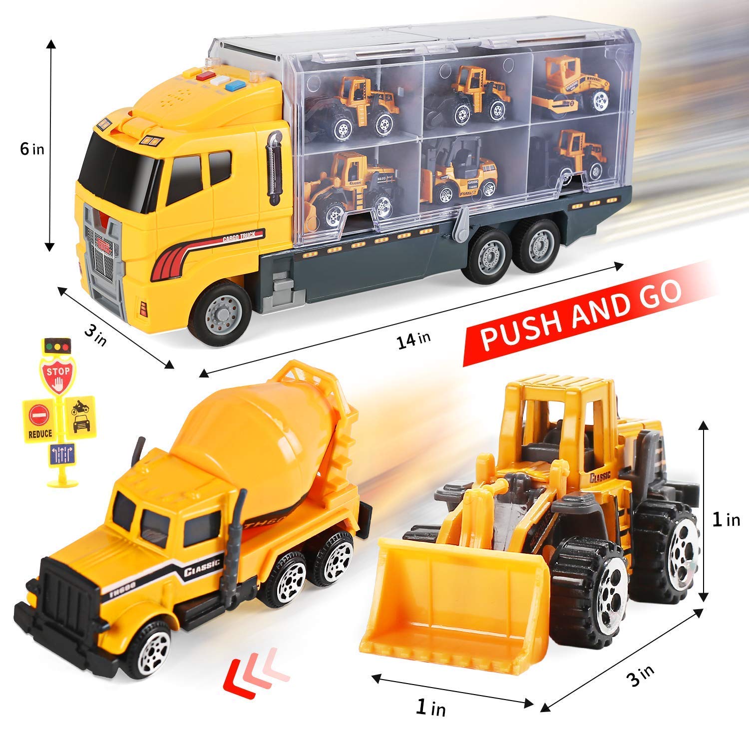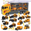 CUTE STONE Toy Vehicles, 25 in 1 Construction Vehicles Trucks Toy Push and Go Car Carrier Truck playset, Play Vehicles Toy with Sounds and Lights